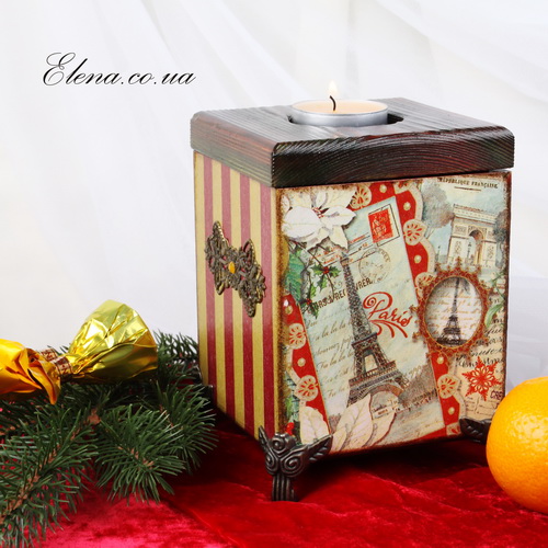 Короб, крышка которого сделана как подсвечник для чайной свечи.