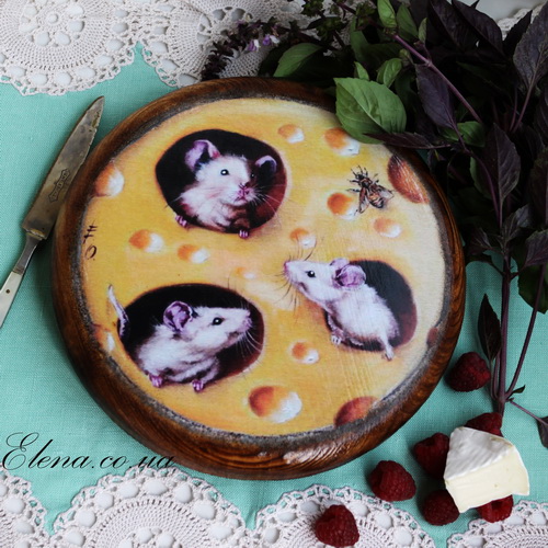 Круглая сервировочная доска-толстушка из натурального дерева пригодится для красивой подачи деликатесных сыров.