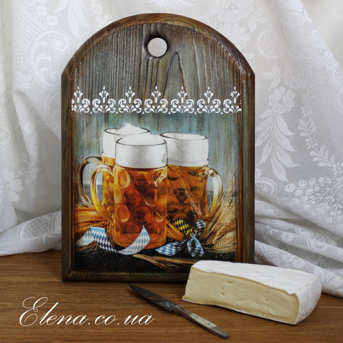 Доска из натурального дерева оригинальной формы поможет красиво подать нарезки и закуски к пиву и не только.