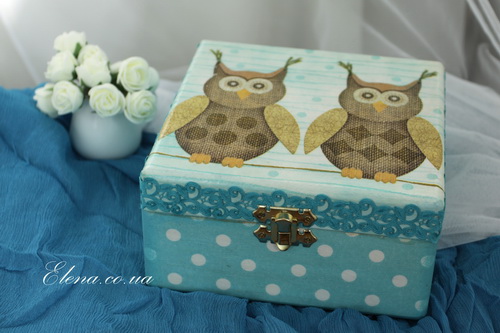 Довольно вместительная шкатулка с изображением пары прелестных сов.
