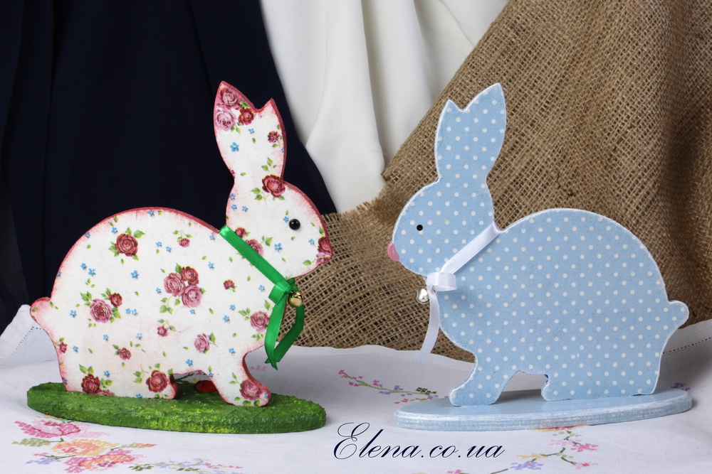 Интерьерные декоративные фигурки на подставках, украшены бантами и бубенчиками.