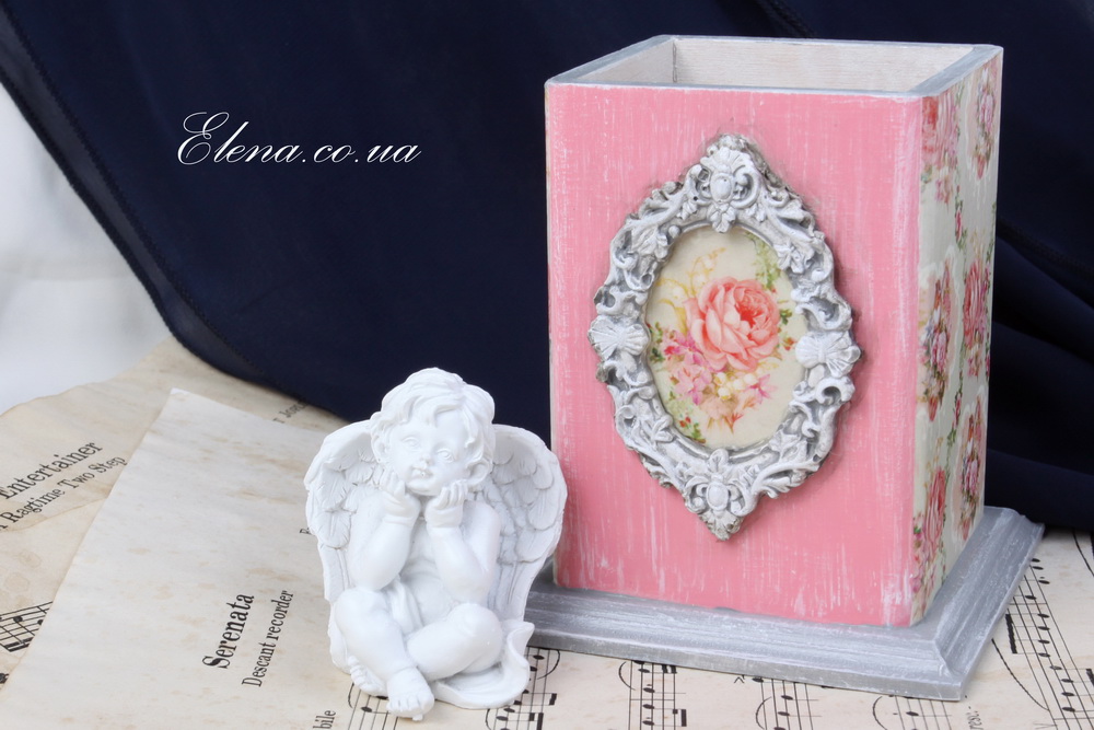 Размеры ориентировочно 8*8*10 см, материал - фанера, декоративная накладка - гипс.