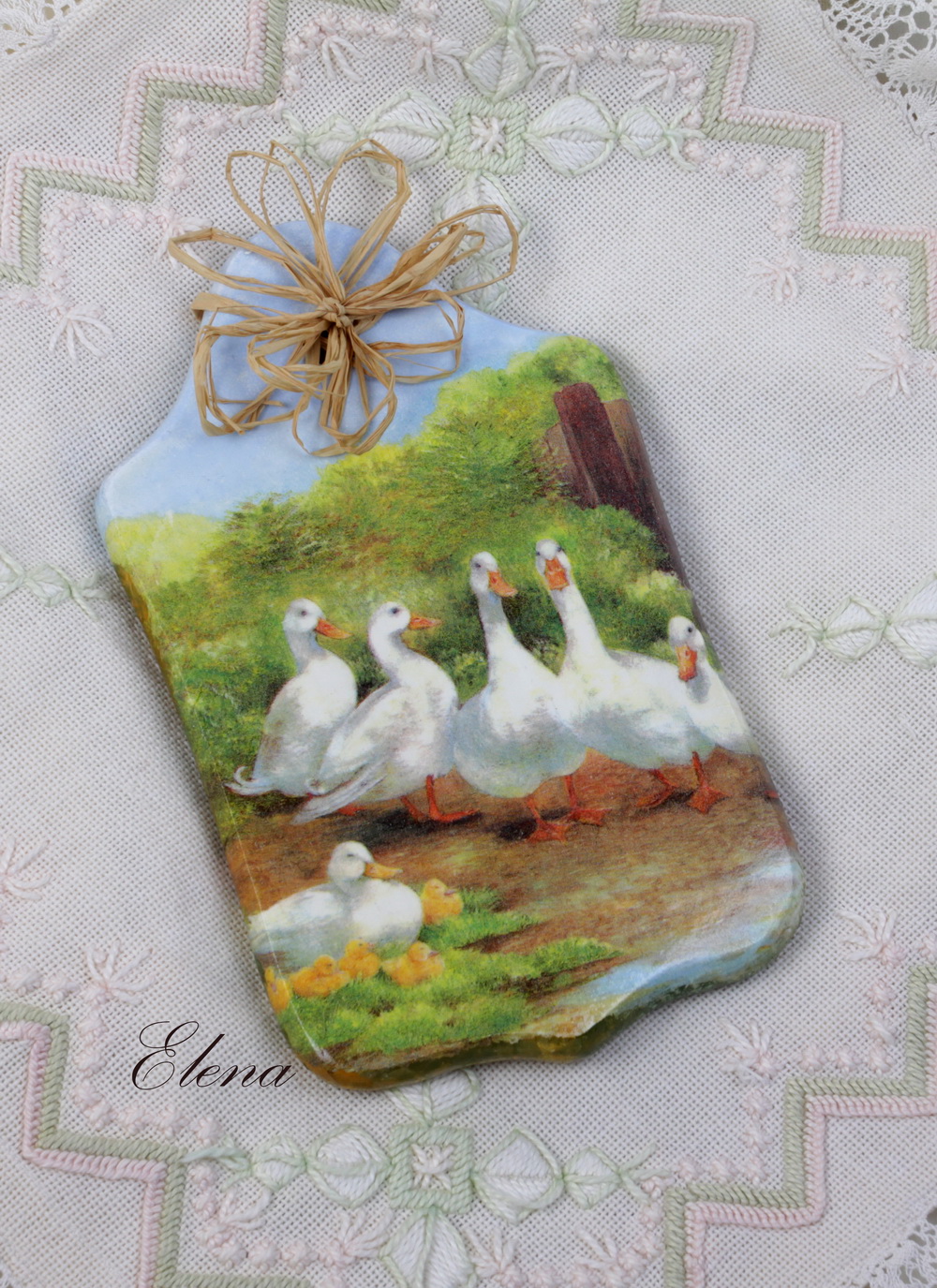 Доска-панно в стиле кантри с изображением деревенского птичьего дворика.