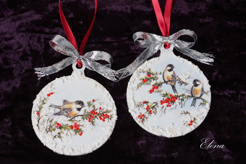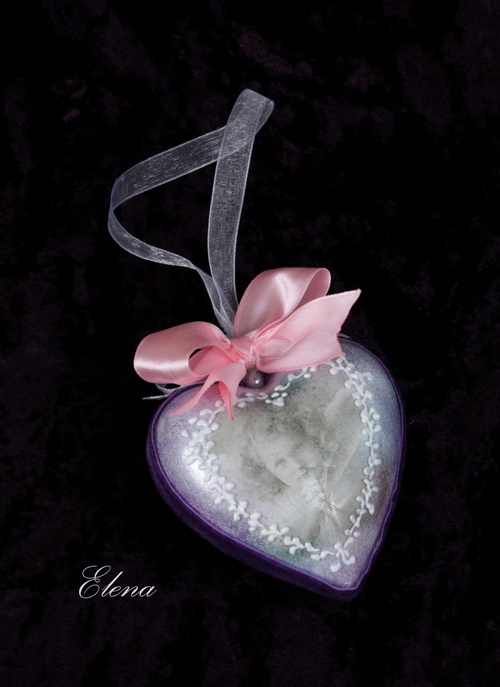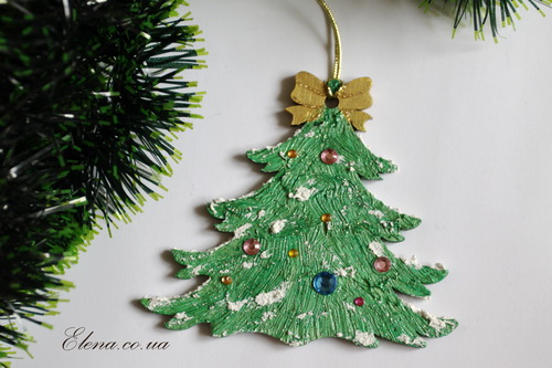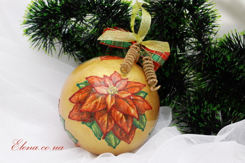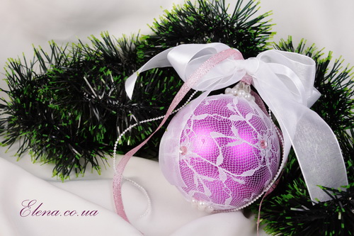 Классическое ёлочное украшение - шар, украшен кружевом, бантами, стразиками и жемчужинками.
