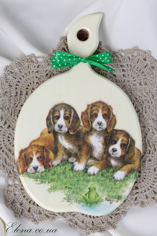 Праздничное настроение на вашей кухне поможет создать этот милый щеночек! Доска выполнена в классической новогодней цветовой гамме.