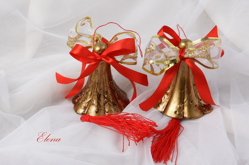 Пара колокольчиков декорирована в красно-золотой цветовой гамме.