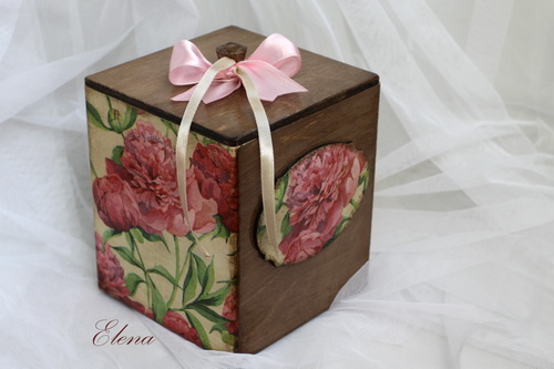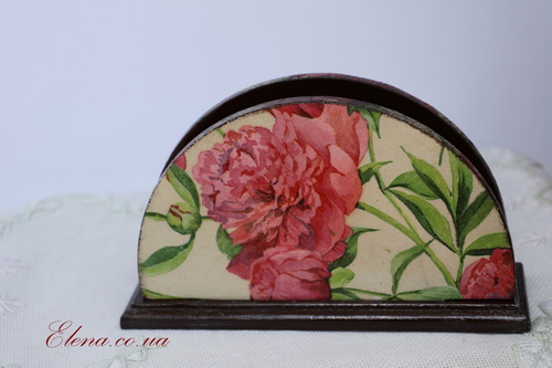 Подставка для бумажных салфеток с яркими пионами - красивая и полезная вещь на вашей кухне.