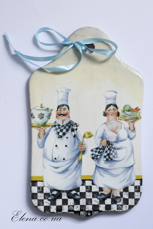 Пара симпатичных поваров приглашает к столу! Украсьте свою кухню этим панно, которое по совместительству является разделочной доской, и хороший аппетит вашим домочадцам гарантирован!