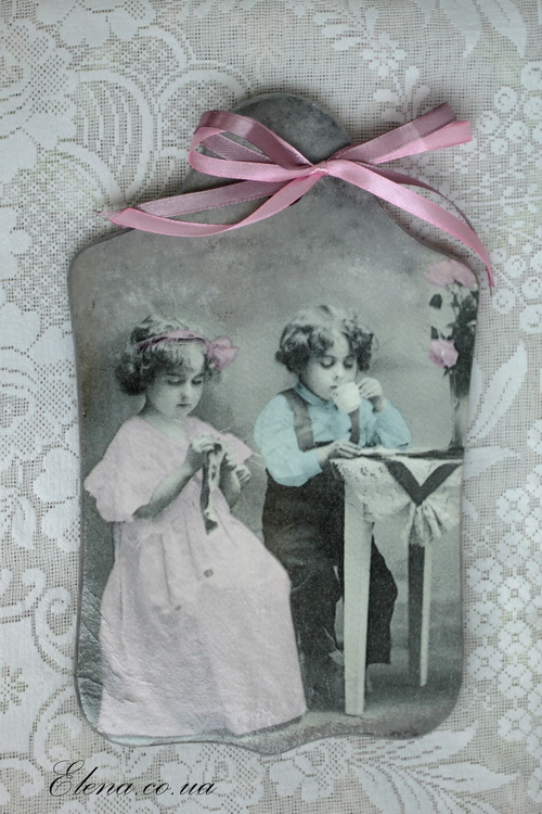 Доска-панно с винтажным фото милых деток, играющих во "взрослую жизнь".