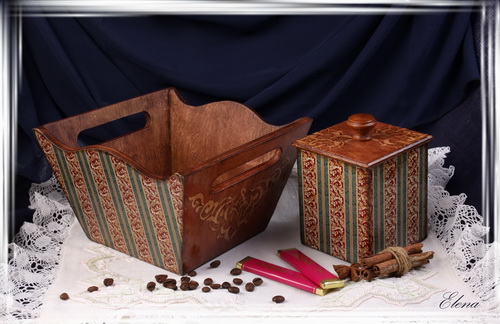 Набор для кухни - конфетница и небольшой короб, в котором можно хранить чай или кофе.