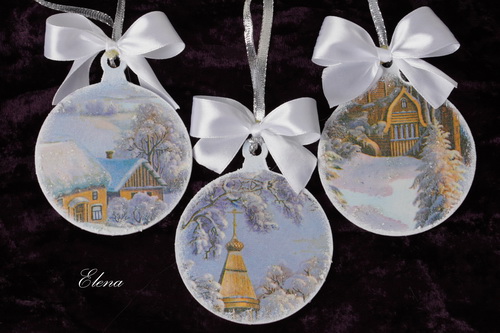 Комплект новогодних украшений на елку, состоит из трёх подвесок.
