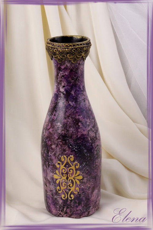 Стеклянная ваза декорирована в технике имитации камня, украшена объёмными элементами с золотой тонировкой.