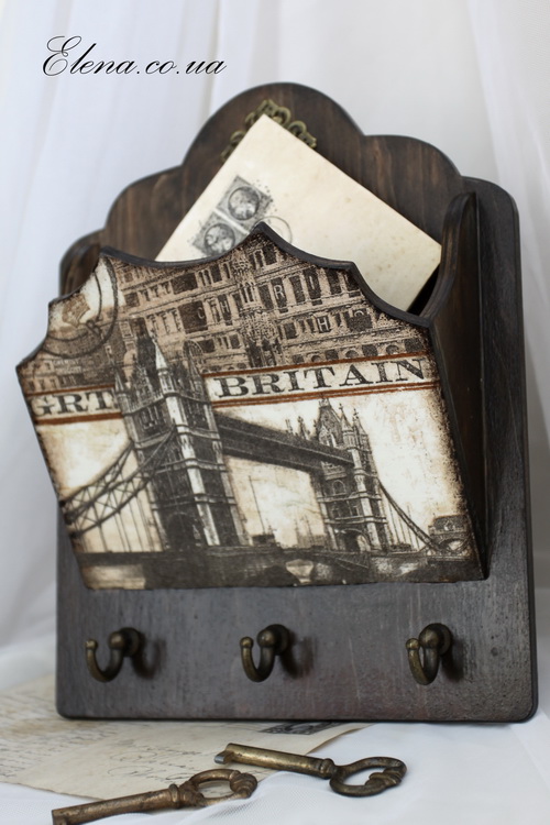 Настенная ключница с карманом для писем, квитанций или записок.