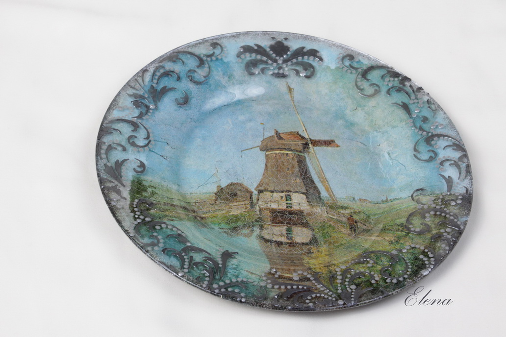 Декоративная стеклянная тарелка с репродукцией картины голландского художника П.Габриэля.
