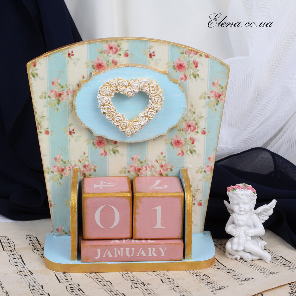 С помощью кубиков ежедневно выставляются актуальные даты, поэтому такой календарь и называется "вечный".