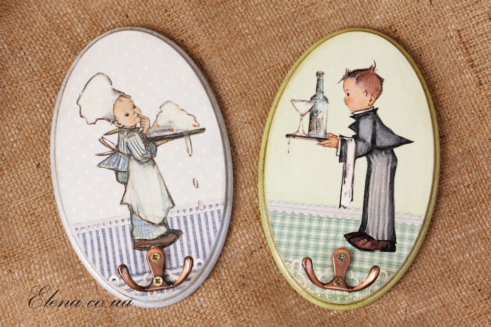 Овальная вешалка-панно в стиле "винтаж" с двойным крючком. На обратной стороне петли для крепления к стене.