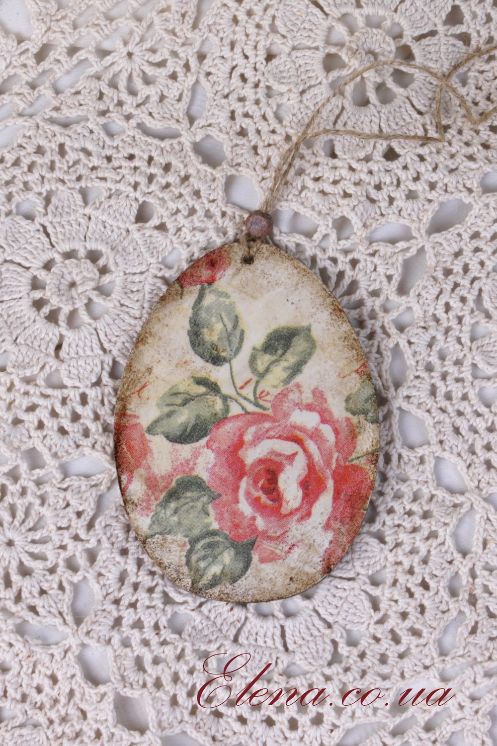 Интерьерное украшение в винтажном стиле, подвеска овальной формы с изображением розы.