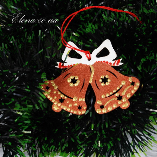 Симпатичная и яркая подвеска на ёлку в форме пары колокольчиков.