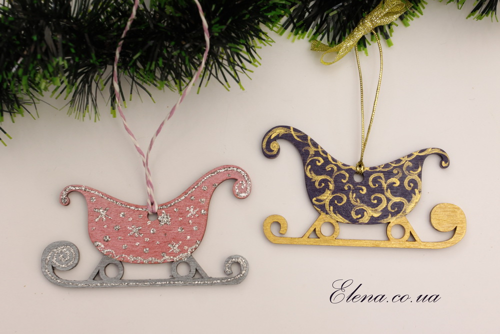 Ёлочное новогоднее украшение - подвеска в виде саночек, расписанная вручную.